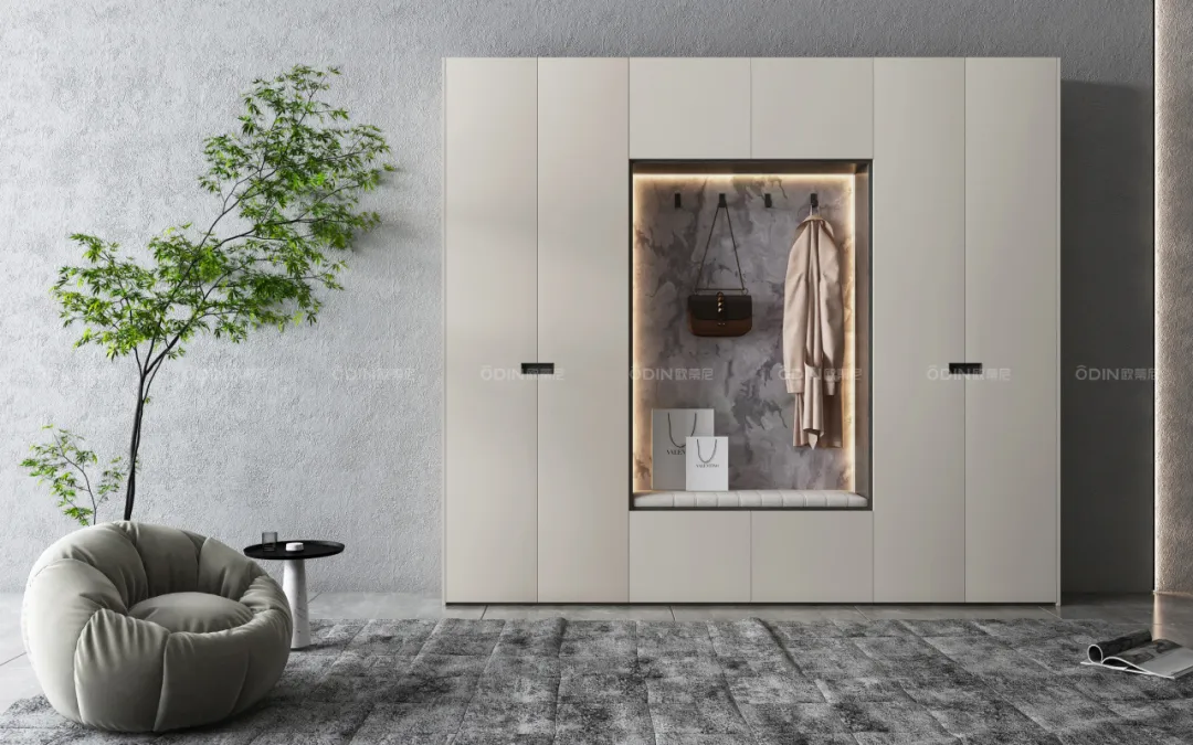 優(yōu)質(zhì)的玄關(guān)柜,在細(xì)節(jié)上同樣不容小覷。環(huán)保材料的選用,保障了家人的健康安全;靜音滑軌、緩沖鉸鏈的設(shè)計(jì),讓每一次開(kāi)合都悄無(wú)聲息,不打擾家的寧?kù)o;而恰到好處的照明設(shè)計(jì),更是為玄關(guān)增添了一抹溫馨與神秘,讓夜晚歸家的路不再孤單。