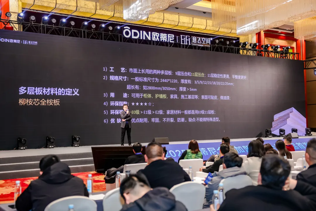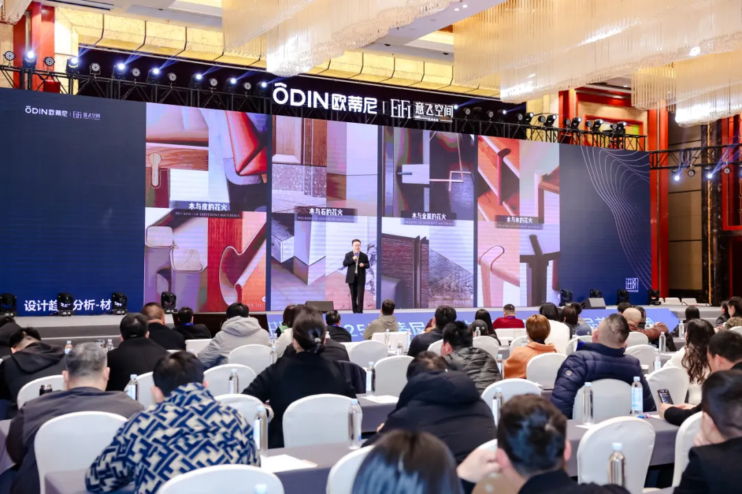 緊接著,歐蒂尼產(chǎn)品中心總監(jiān)閆瑞超先生隆重揭曉了2025年度新品——意飛系列。閆總從設(shè)計(jì)理念、工藝細(xì)節(jié)到市場(chǎng)定位,全面闡述了這款新品的非凡魅力?!耙怙w”系列的問(wèn)世,不僅彰顯了歐蒂尼家居的創(chuàng)新實(shí)力,更標(biāo)志著公司在高端定制領(lǐng)域的深耕細(xì)作。